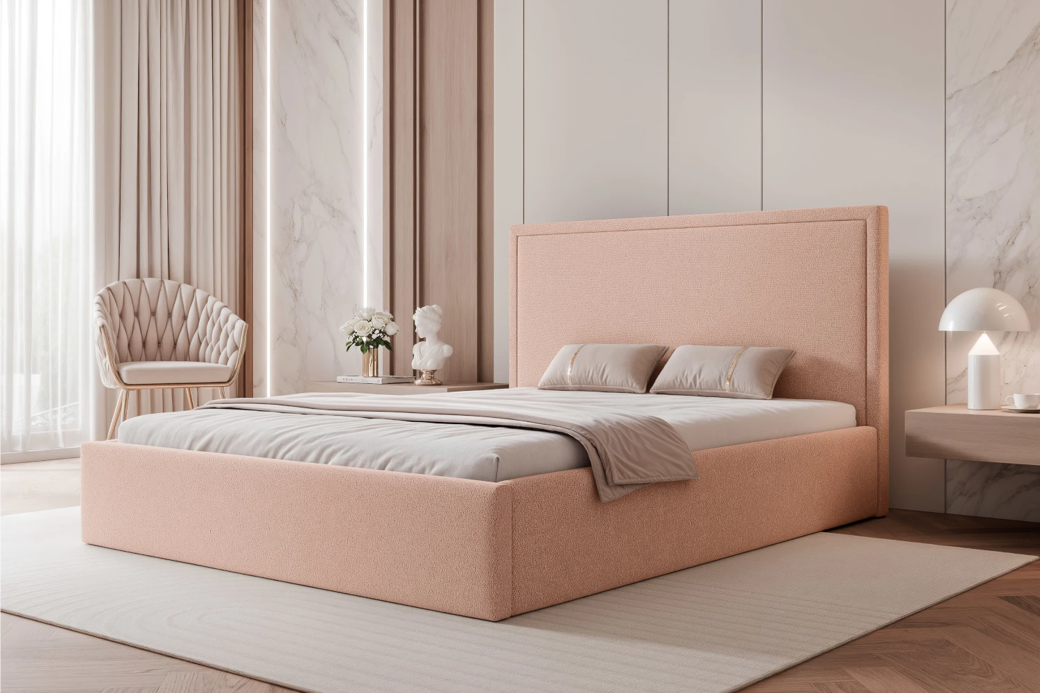 Łóżko tapicerowane z pojemnikiem na pościel Savio Brzoskwiniowy