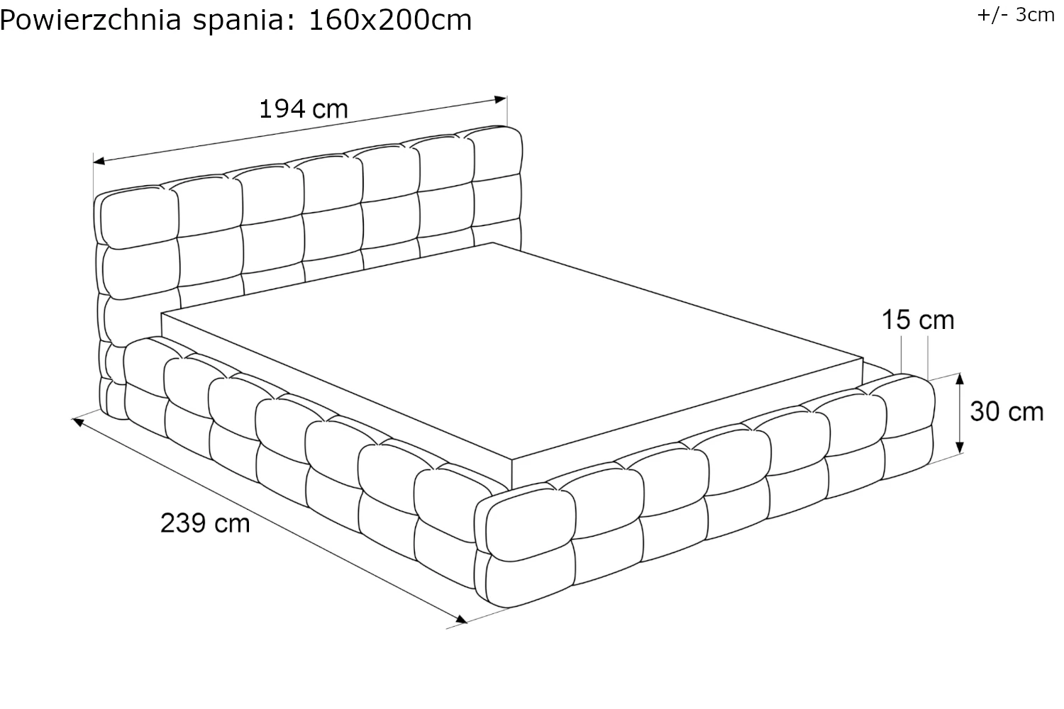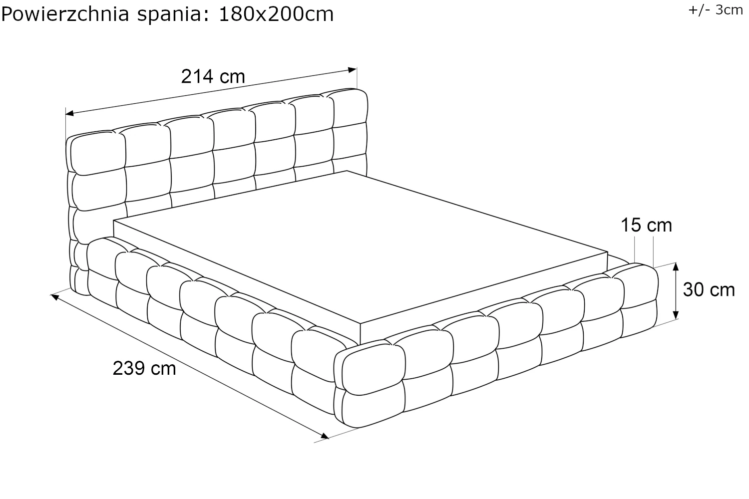 - Szerokość dla materaca 180 cm: 215 cm
