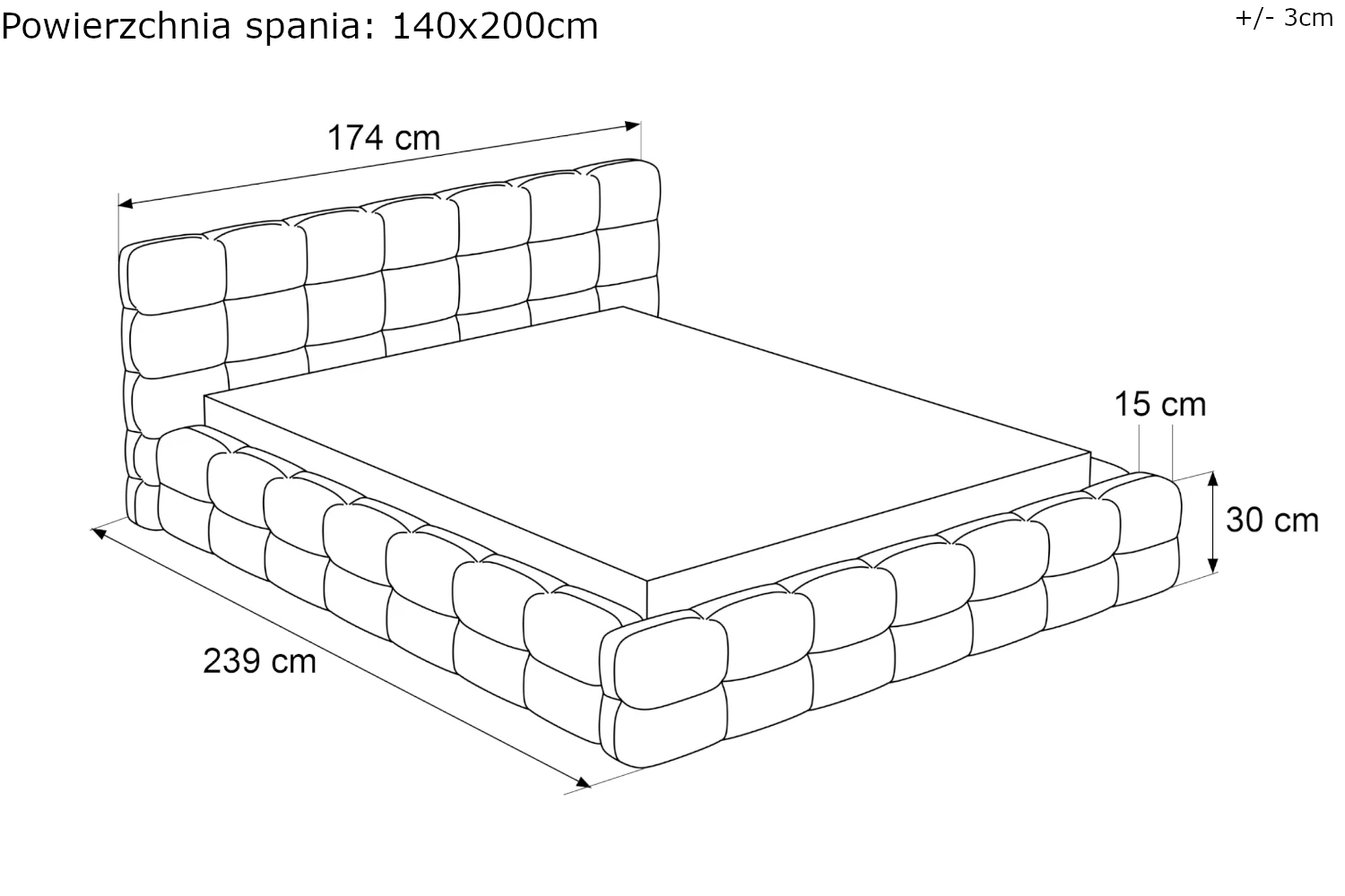 - Szerokość dla materaca 140 cm: 175 cm