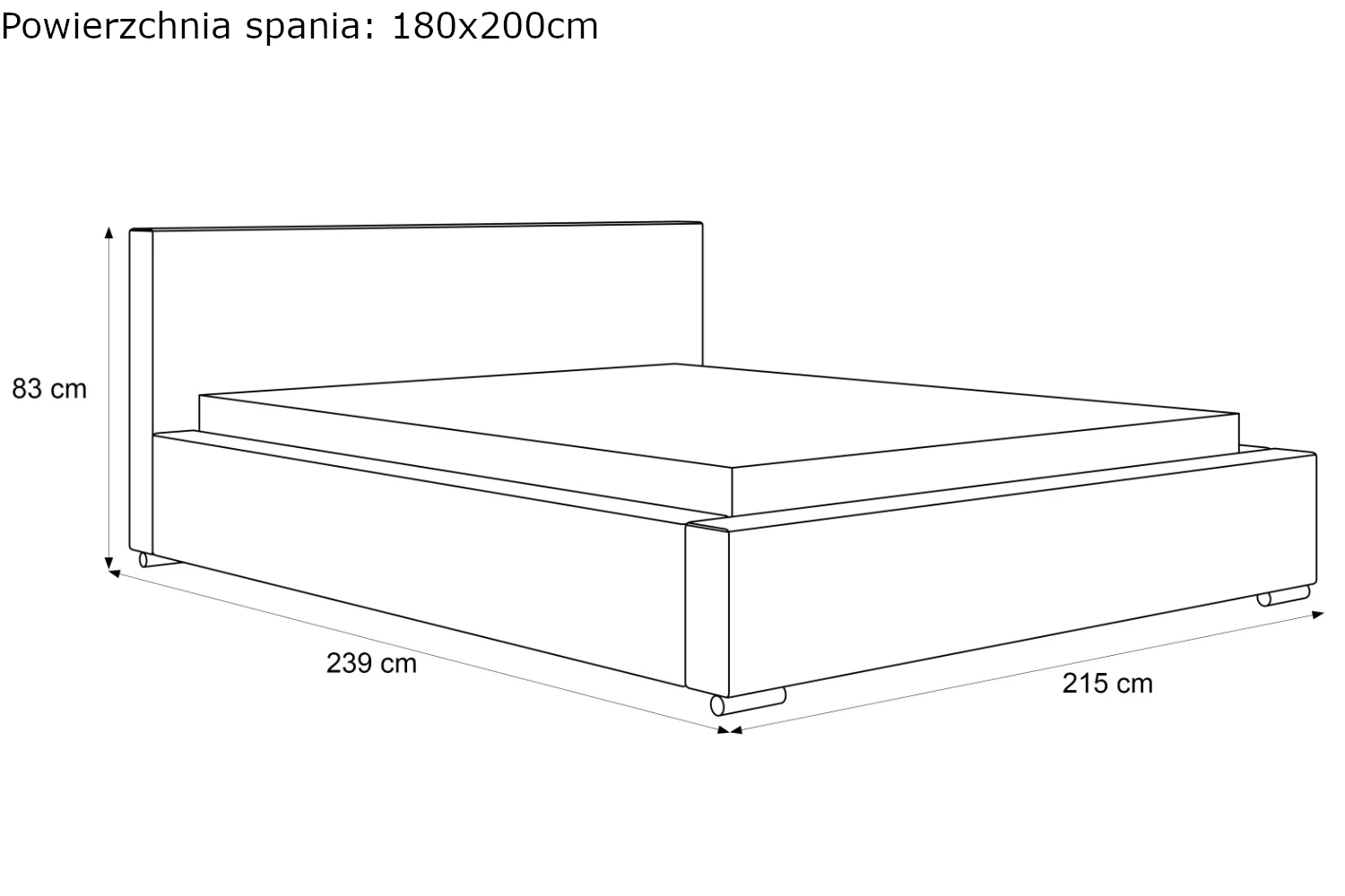 - Szerokość dla materaca 180 cm: 215 cm