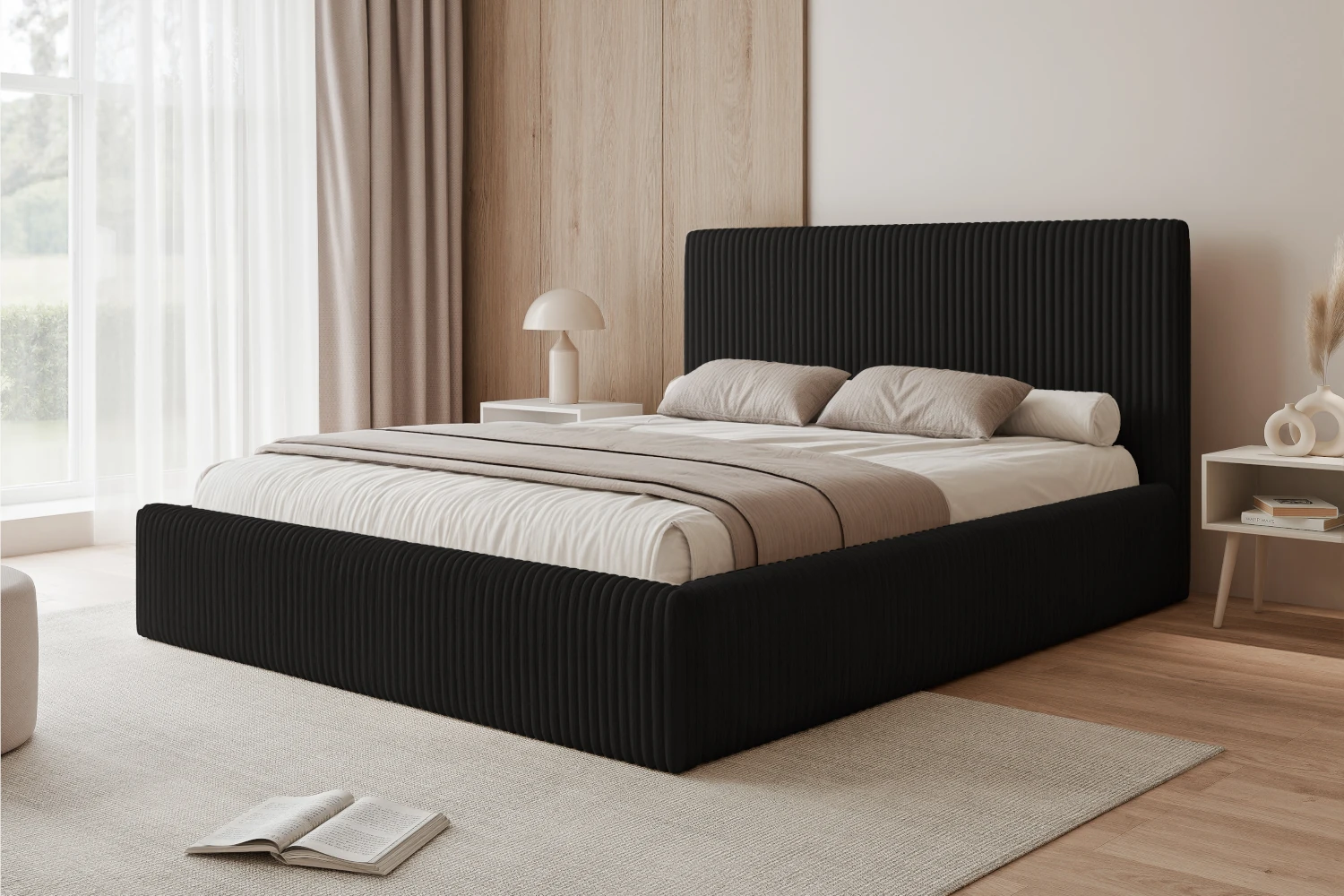 Jeśli szukasz mebla, który będzie jednocześnie efektowny i funkcjonalny, łóżko tapicerowane Luxo spełni te oczekiwania. To stylowe łóżko do sypialni w kolorze czarnym, zaprojektowane tak, aby zapewnić komfort wypoczynku oraz dodatkową przestrzeń do przechowywania. Miękka forma, staranne wykończenie i uniwersalna kolorystyka sprawiają, że Luxo pasuje zarówno do wnętrz nowoczesnych, jak i klasycznych.
