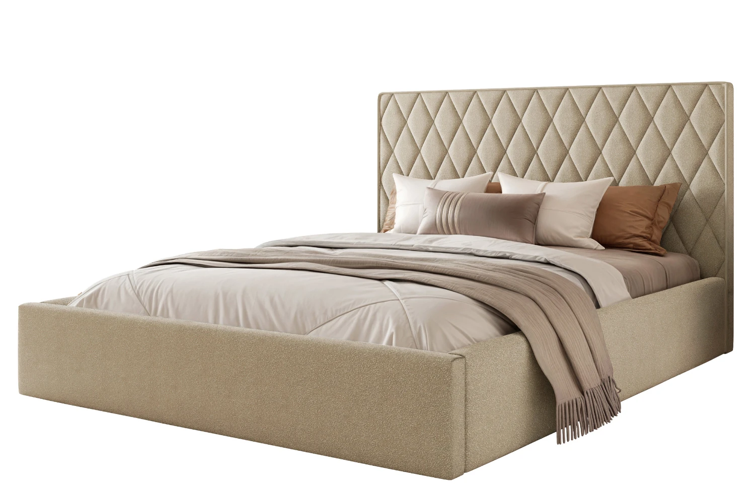 Łóżko tapicerowane z pojemnikiem na pościel i stelażem Royal Beżowy