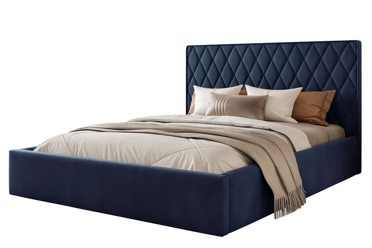 Łóżko tapicerowane z pojemnikiem na pościel i stelażem Royal Granatowy
