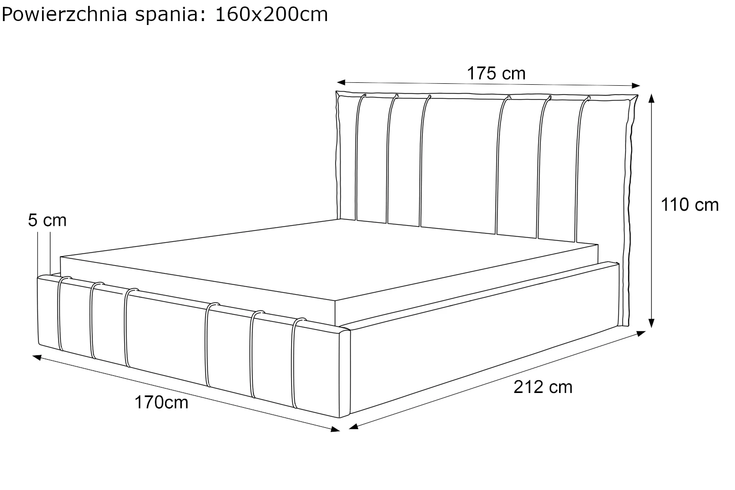 Kluczowym elementem konstrukcji jest duży pojemnik na pościel, który zajmuje całą powierzchnię pod stelażem. To idealne miejsce na przechowywanie dodatkowych tekstyliów, kołder czy poduszek, co pozwala na lepszą organizację przestrzeni w sypialni. Wnętrze skrzyni zostało estetycznie wykończone wigofilem, a podłoga wykonana z białej płyty laminowanej zapewnia trwałość i łatwość w utrzymaniu czystości. Stabilność całej konstrukcji gwarantują dyskretne ślizgi, które chronią podłogę przed zarysowaniami. Wyjątkowy komfort wypoczynku zapewnia wysoki zagłówek (110 cm), który został wypełniony warstwą pianki oraz owaty o grubości 3 cm. Dzięki temu stanowi on miękkie i wygodne oparcie podczas wieczornego relaksu. W zestawie znajduje się również wytrzymały stelaż drewniany składający się z 32 elastycznych listew, który gwarantuje odpowiednie podparcie dla materaca i dba o jego właściwą wentylację. Boki łóżka o wysokości 30 cm i grubości 5 cm tworzą solidną, a zarazem wizualnie lekką ramę.