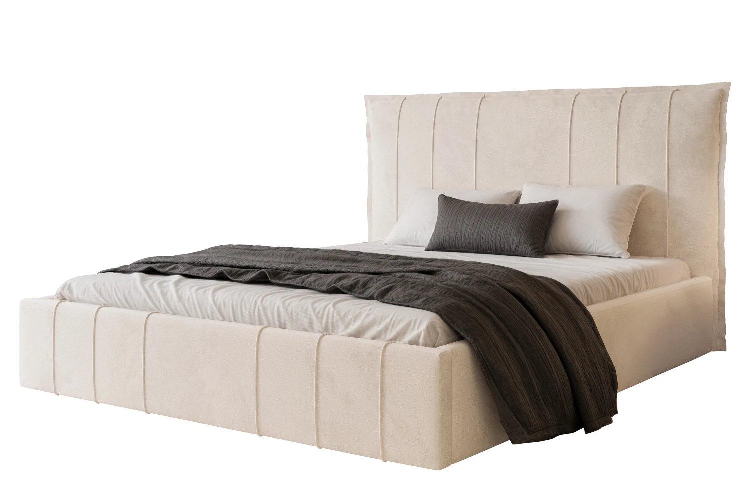 Łóżko tapicerowane z pojemnikiem na pościel i stelażem Vertico Ecru