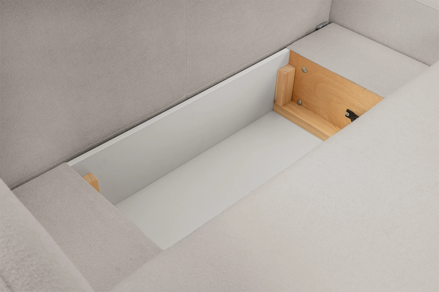 Szerokie siedzisko i miękkie oparcia zachęcają do relaksu po długim dniu. Dzięki funkcji rozkładania narożnik Mochi w kilka chwil zamienia się w komfortową powierzchnię do spania - idealną dla gości lub na codzienny wypoczynek. Zintegrowany pojemnik na pościel pozwala łatwo przechować kołdrę, poduszki czy koc, pomagając utrzymać porządek w salonie.