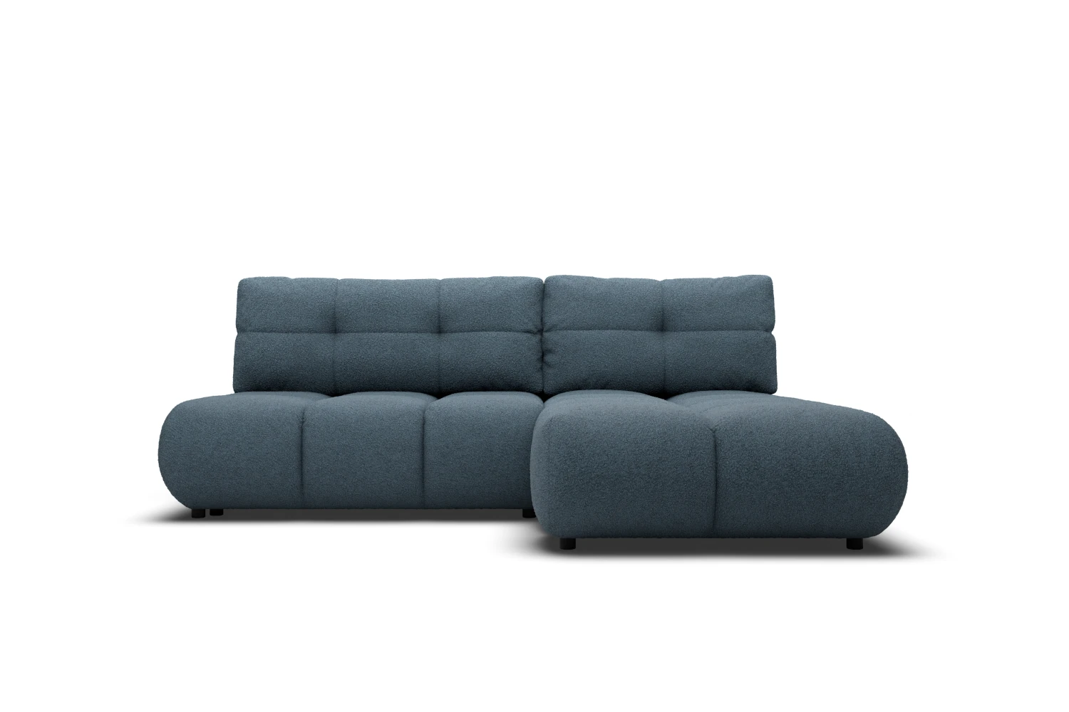 Miękkie, luźne poduchy oparciowe oraz sprężyste, grubo wypełnione siedzisko gwarantują wysoki komfort wypoczynku. Narożnik tapicerowany jest przyjemną w dotyku tkaniną o wyrazistej strukturze, która podkreśla nowoczesny charakter mebla i jest odporna na codzienne użytkowanie. Tapicerowany tył pozwala na ustawienie narożnika także na środku pomieszczenia.
