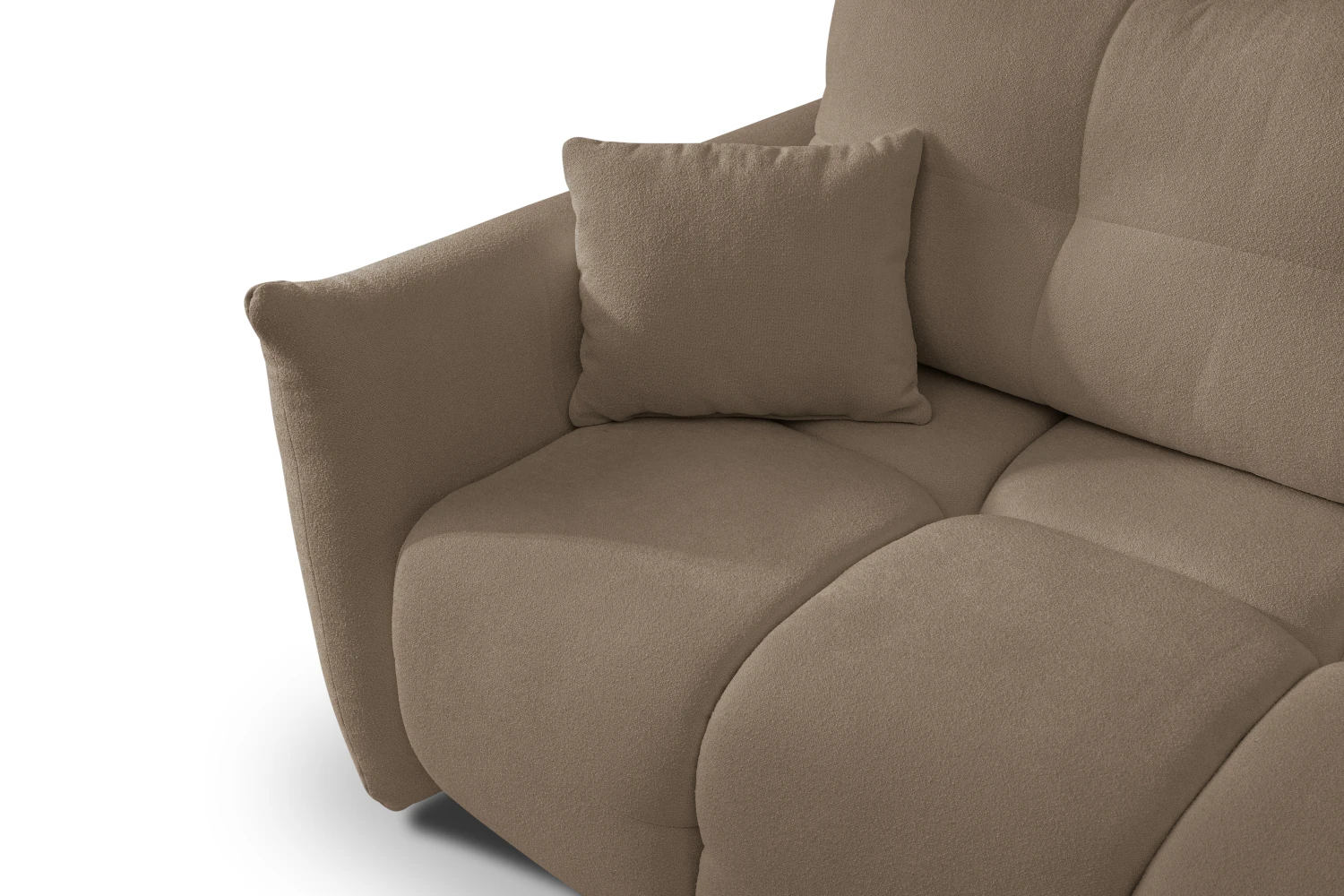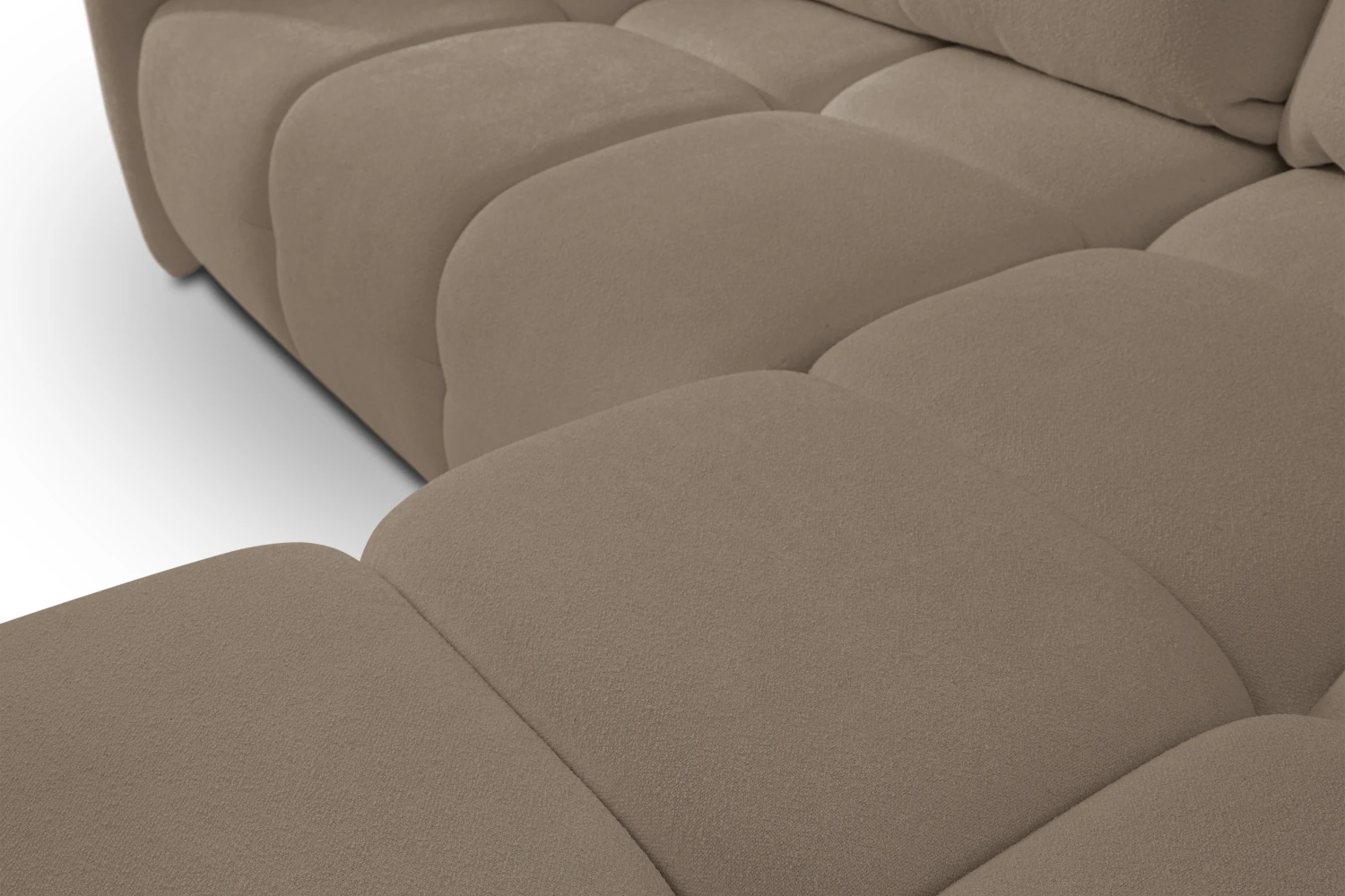 Narożnik Nubi L uniwersalny z funkcją spania i pojemnikiem to propozycja dla osób, które szukają wygodnego i jednocześnie efektownego mebla do nowoczesnego salonu. Charakterystyczne, miękko zaoblone siedziska z dekoracyjnym pikowaniem tworzą przytulną strefę relaksu, a wysokie oparcie z luźnymi poduchami zapewnia komfortowe podparcie pleców podczas oglądania telewizji lub czytania.