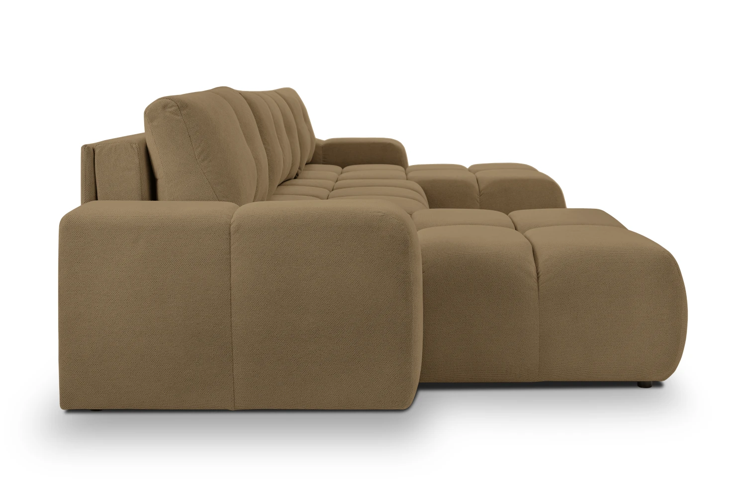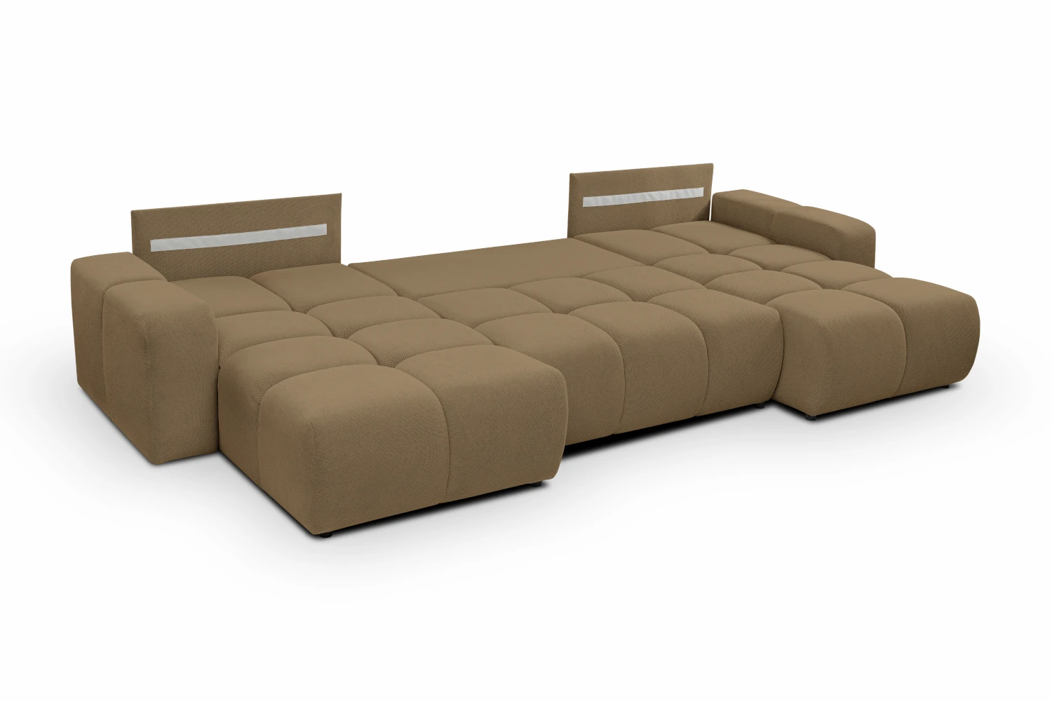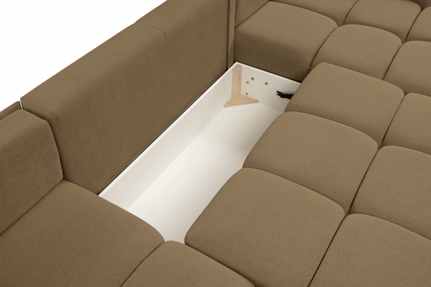Narożnik U z funkcją spania i pojemnikiem na pościel Mellow Brązowy