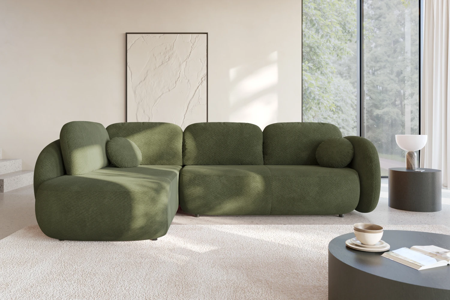 Narożnik do salonu z funkcją spania Mochi Zielony