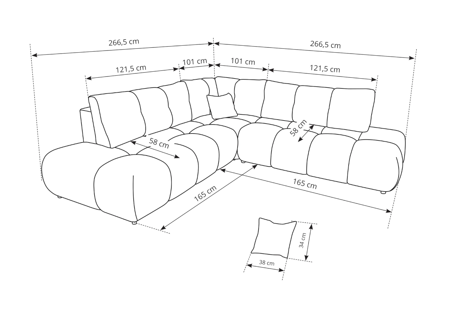 - Głębokość: 267 cm