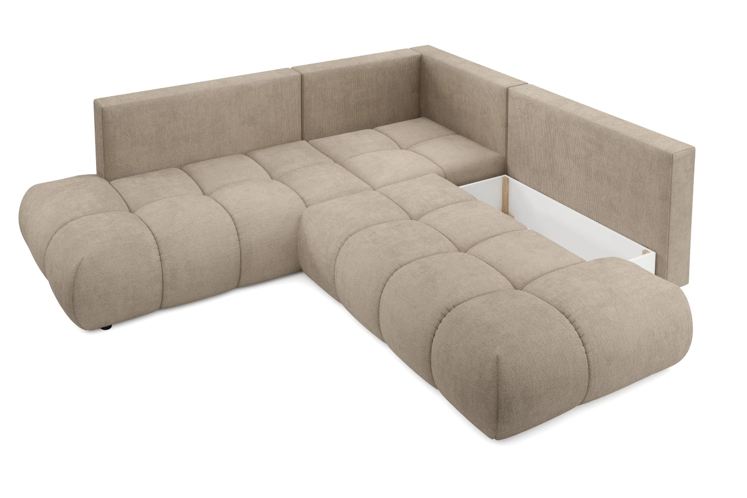 Narożnik z funkcją spania i pojemnikiem na pościel Mellow Jasny Brąz