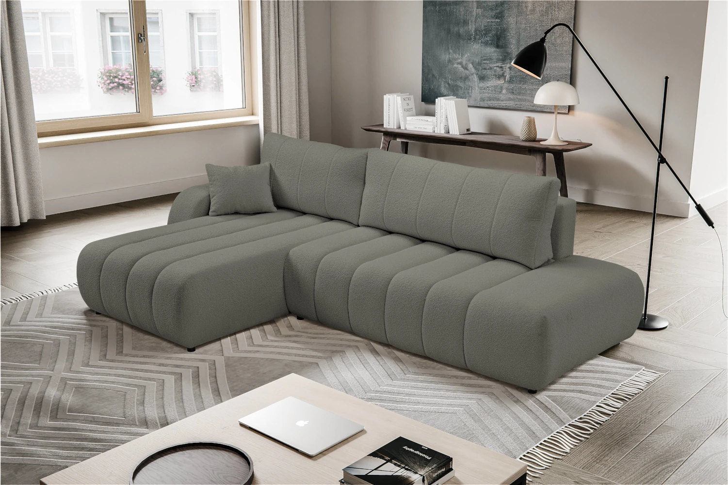 Narożnik z funkcją spania i pojemnikiem na pościel Noma Szary