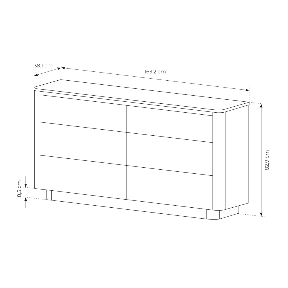 Blat komody oferuje dodatkową przestrzeń na dekoracje, lampę stołową lub rodzinne zdjęcia. To uniwersalny mebel, który sprawdzi się jako komoda do salonu, sypialni czy przedpokoju, pomagając w sprytnym przechowywaniu i estetycznej organizacji przestrzeni.