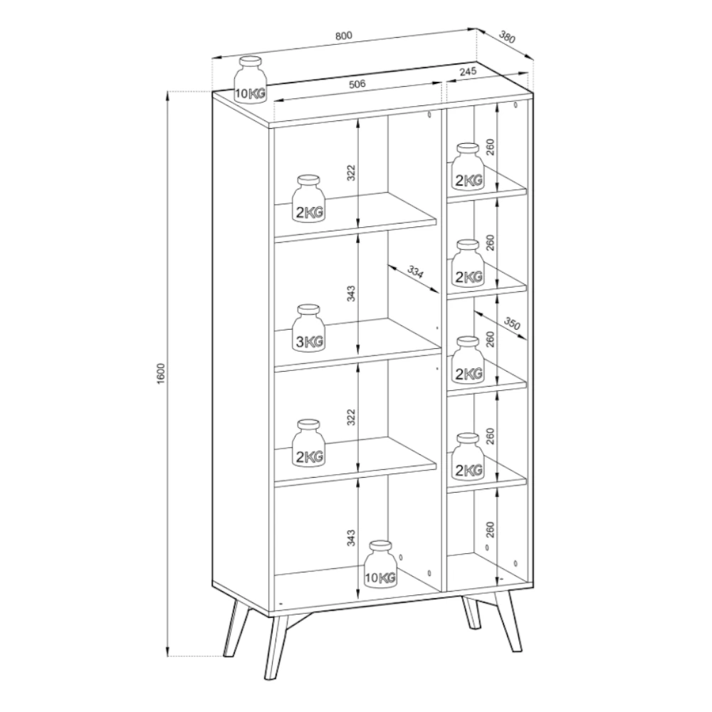 Przemyślany układ półek pozwala wygodnie zorganizować przestrzeń - od wysokich segregatorów po drobne ozdoby. Regał sprawdzi się zarówno jako stylowa biblioteczka, jak i praktyczny schowek na domowe akcesoria.
