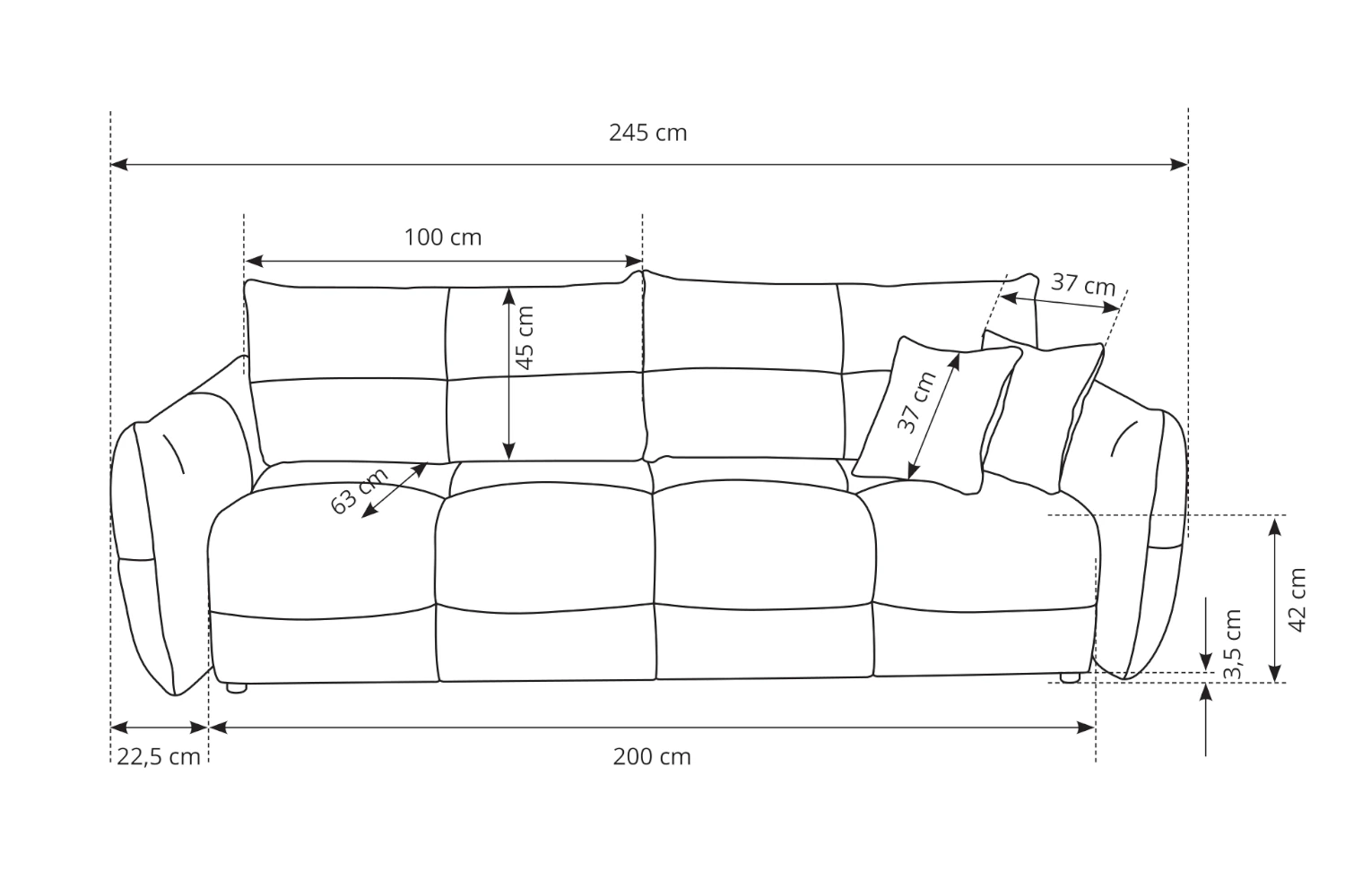 - Głębokość siedziska: 63 cm