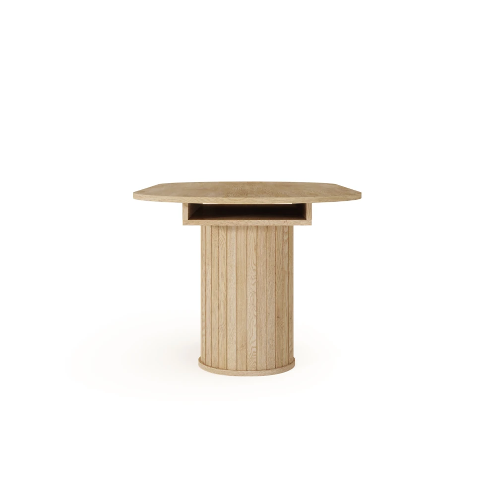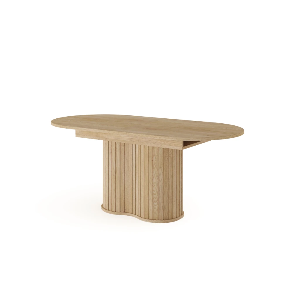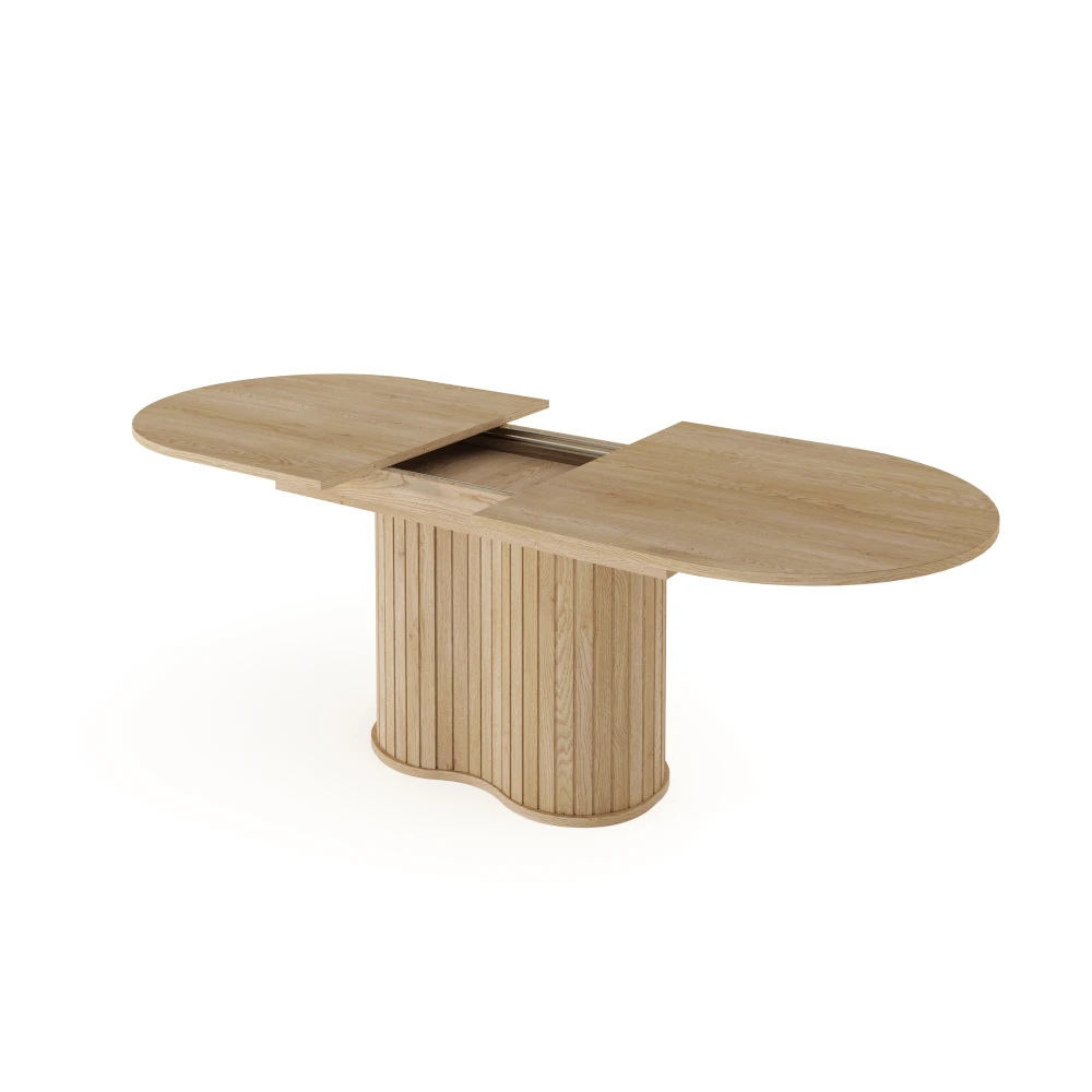 Stół owalny rozkładany Ardea Dąb Cremona to elegancki stół do jadalni z ryflowaną podstawą, który w kilka chwil zmienia się z rodzinnego stołu na co dzień w wygodne miejsce do przyjmowania gości.