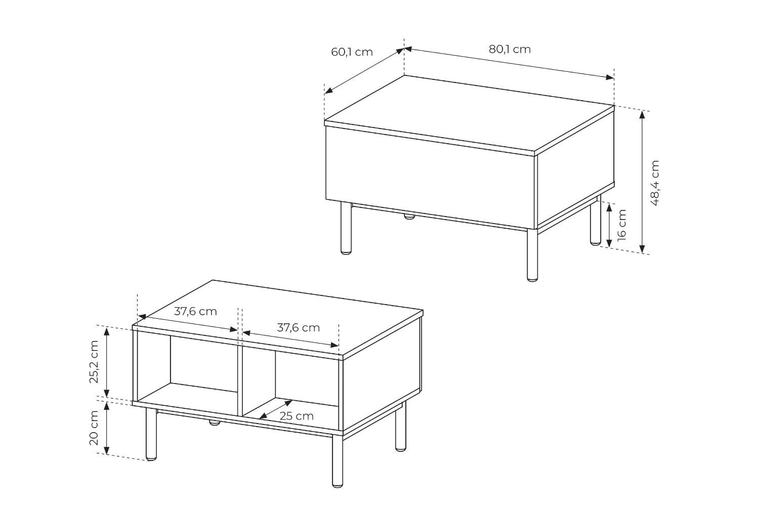 - Wysokość nóżek: 20 cm