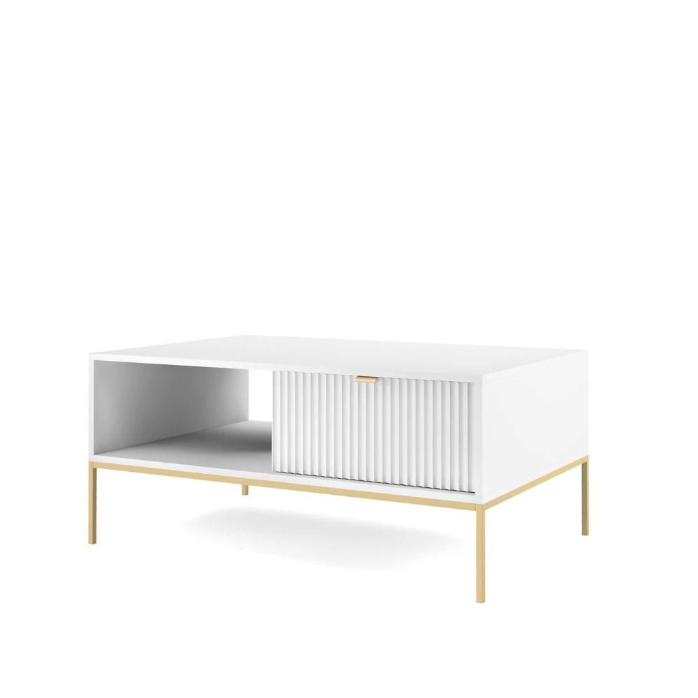 Stolik kawowy Nuo biały z ryflowanymi szufladami