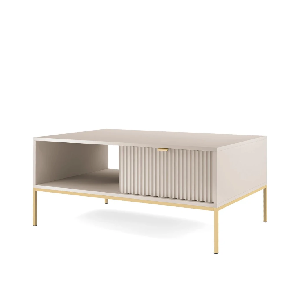 Stolik kawowy Nuo kaszmirowy z ryflowanymi szufladami