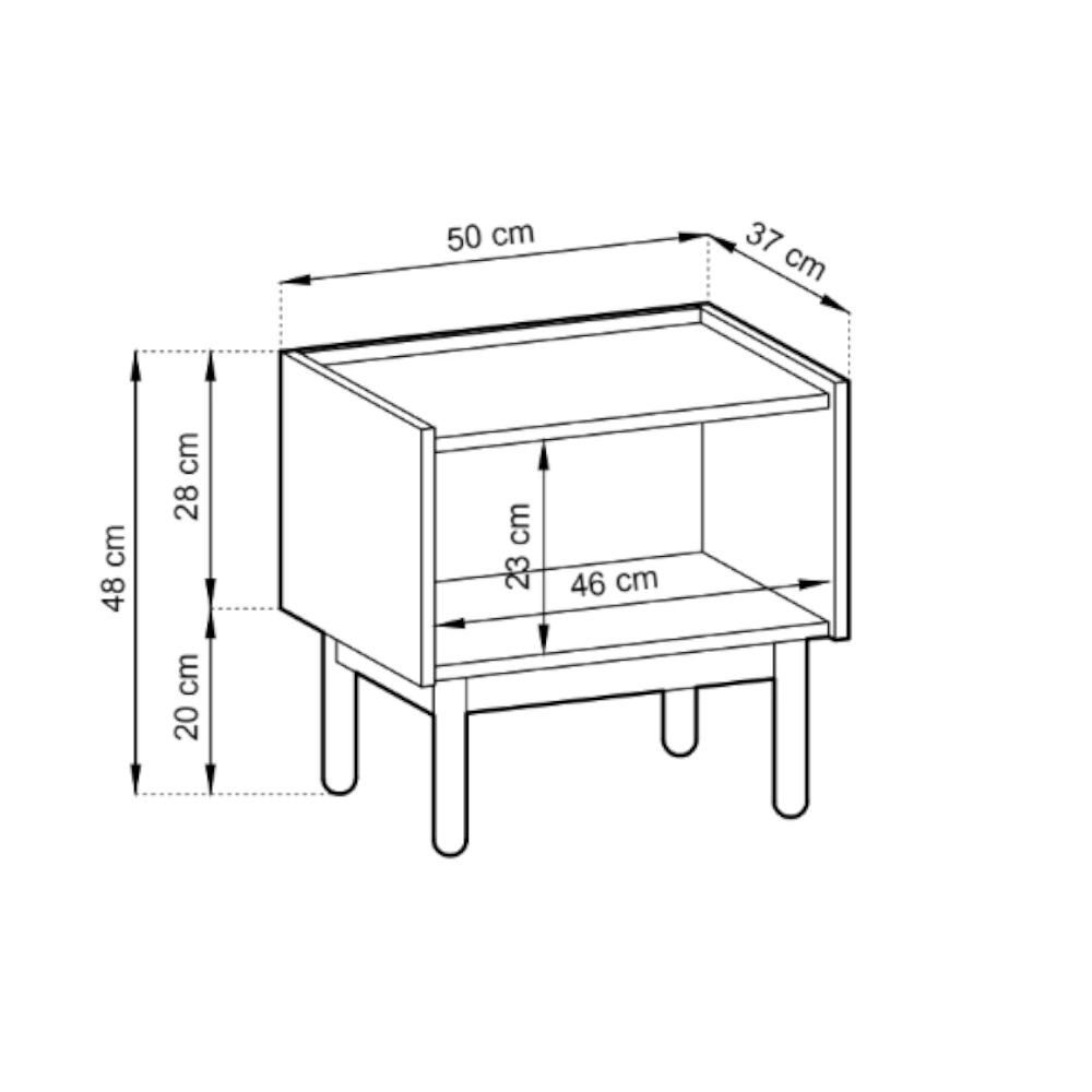 Blat stolika nocnego oferuje wygodne miejsce na lampkę, książkę, szklankę wody czy dekoracje. Dzięki kompaktowym wymiarom mebel świetnie sprawdzi się także jako mały stolik pomocniczy w salonie, kąciku czytelniczym lub przedpokoju.