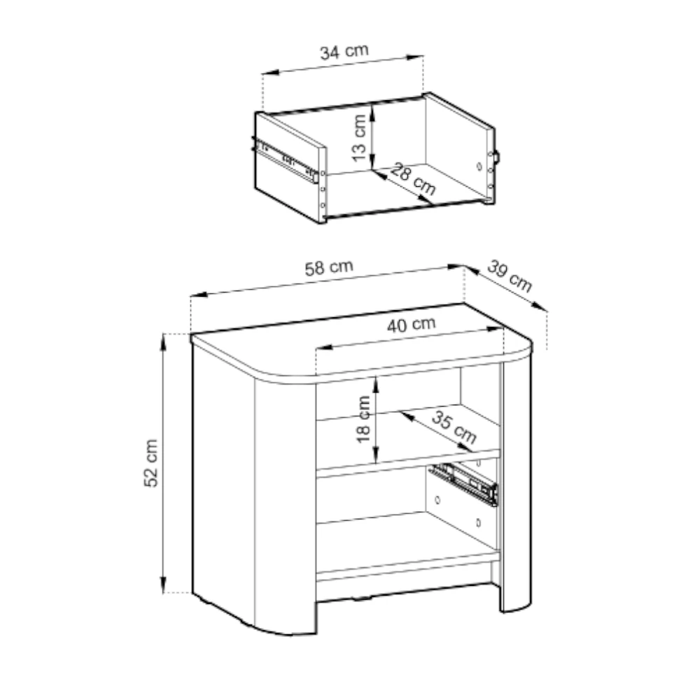 W otwartej wnęce wygodnie odłożysz książkę, telefon lub okulary, a pojemna szuflada pomieści wszystkie drobiazgi, które chcesz mieć zawsze pod ręką, ale schowane przed wzrokiem.