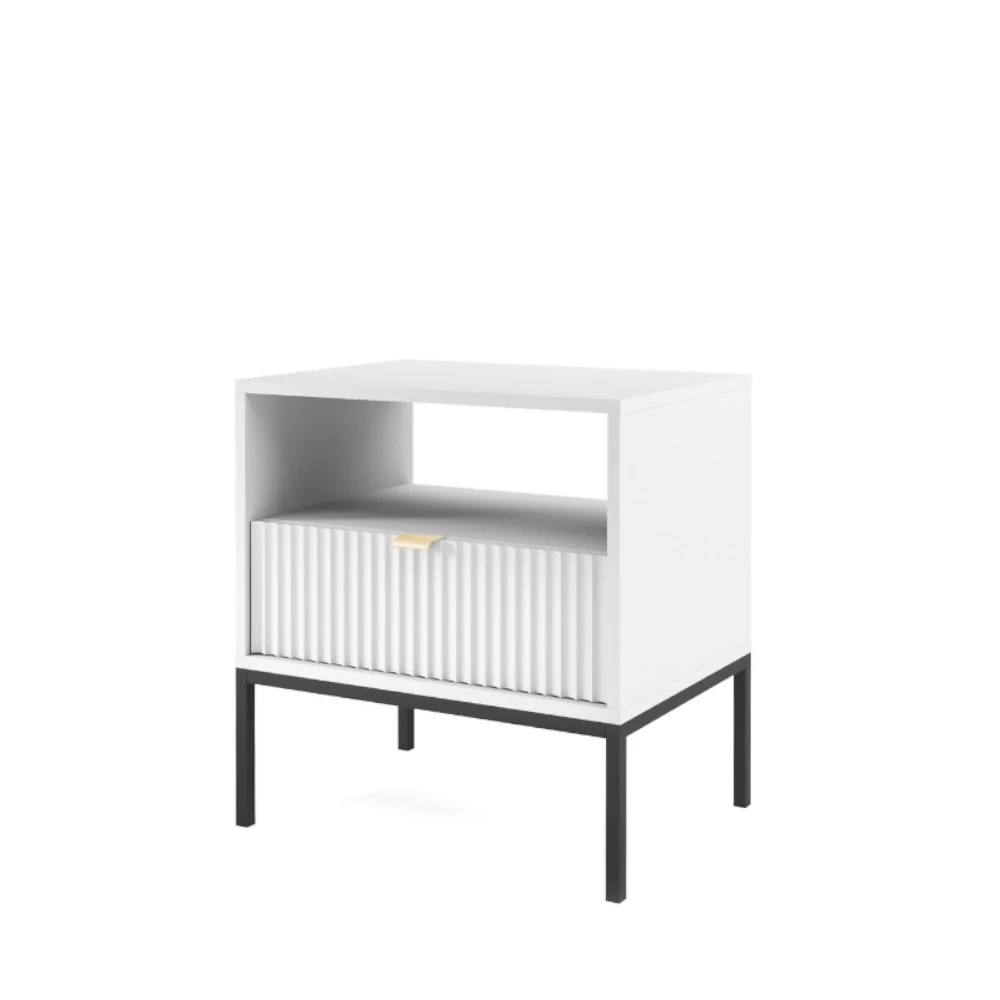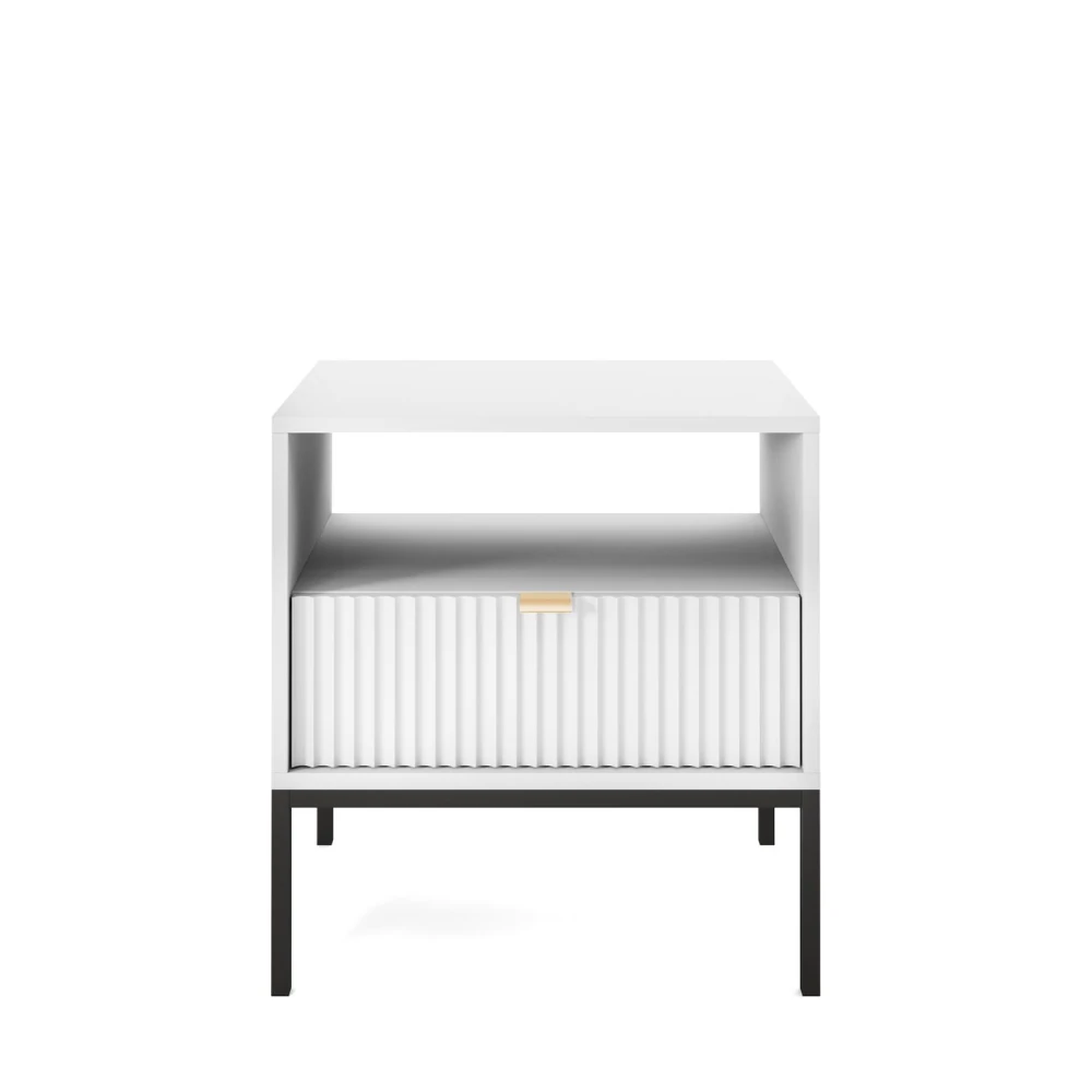 Stolik nocny Nuo biały z ryflowaną szufladą