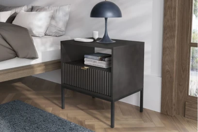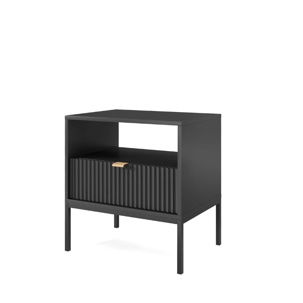 Stolik nocny Nuo czarny z ryflowaną szufladą