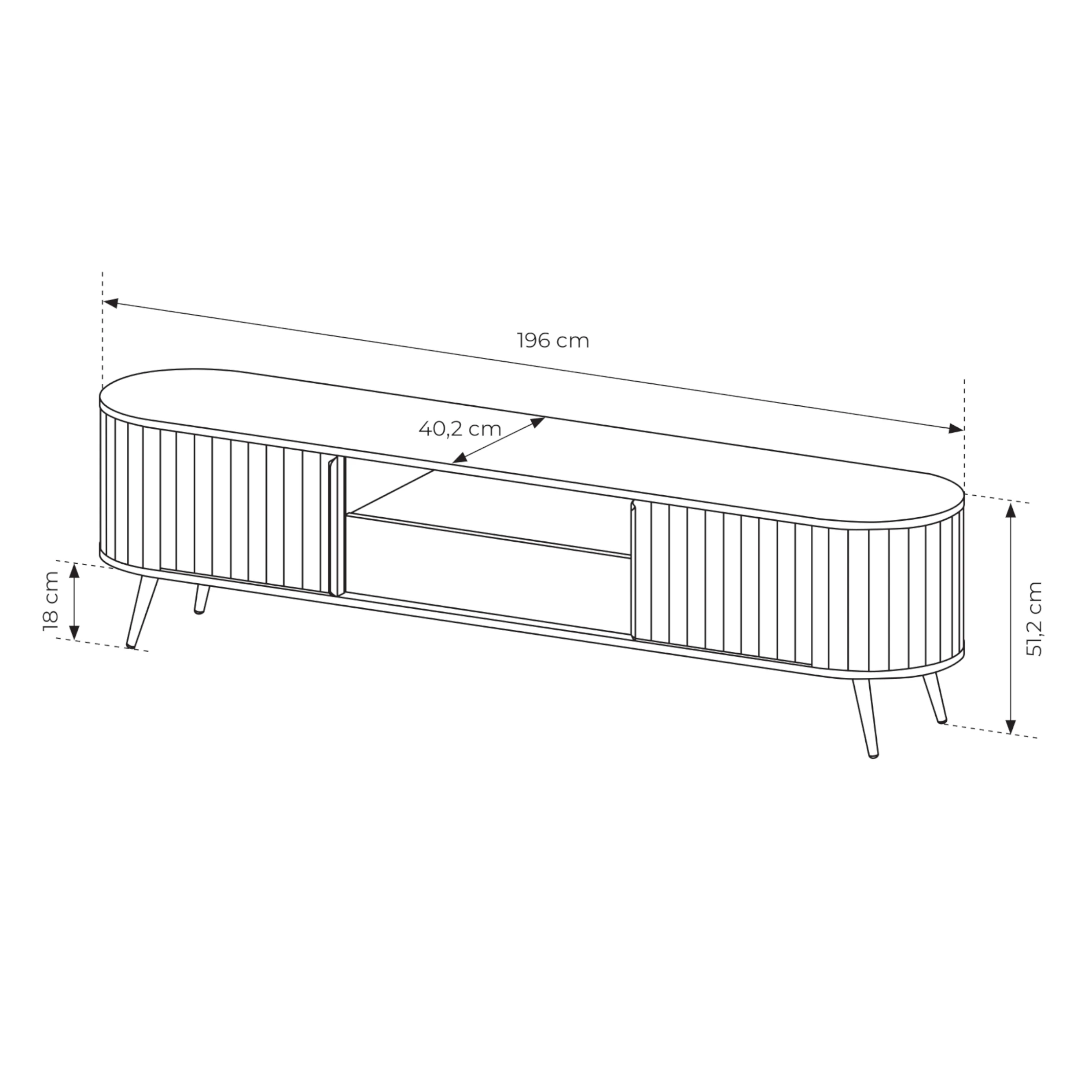 - Front: ryflowana płyta MDF 18 mm + płyta wiórowa laminowana 16 mm