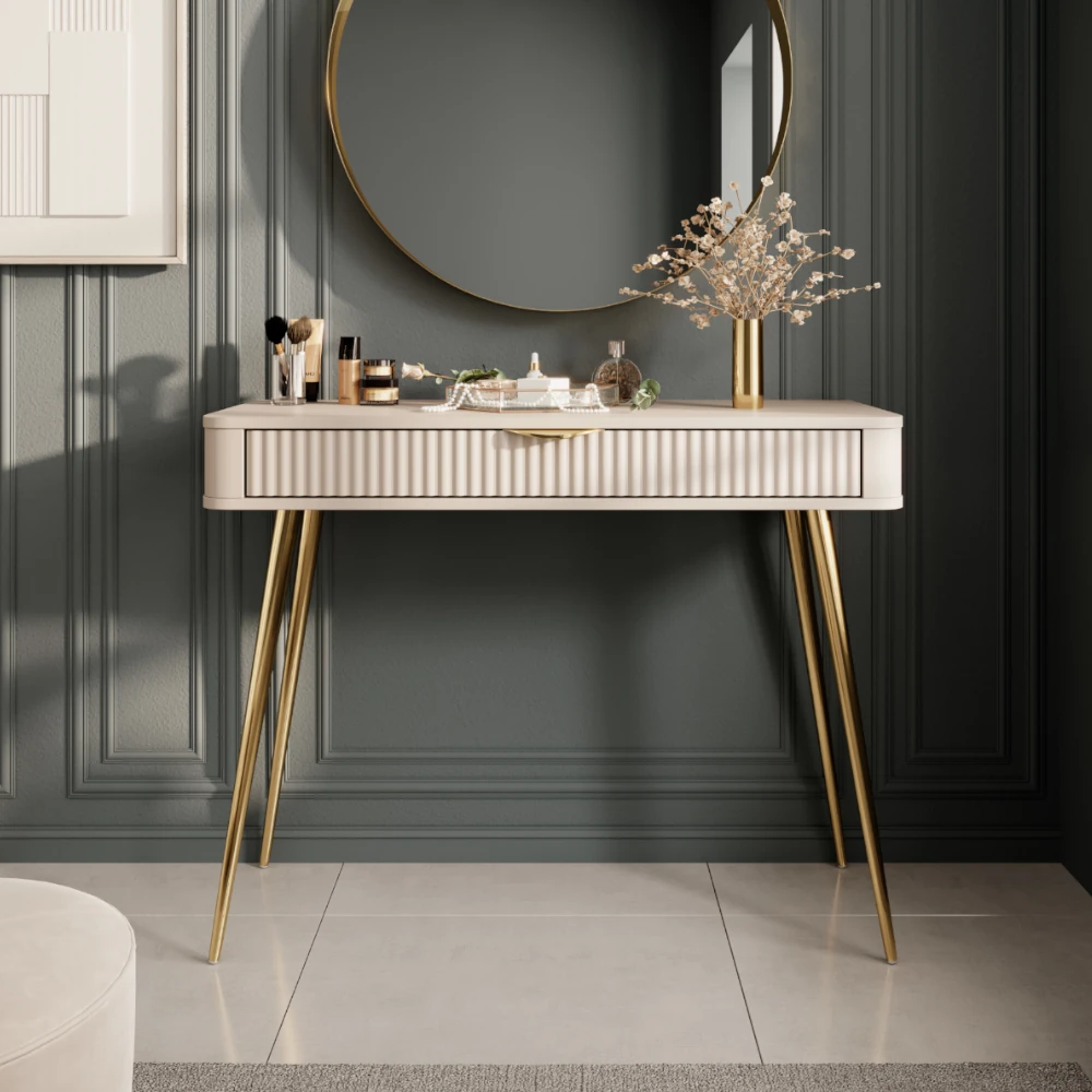 Toaletka Amelia z ryflowaną szufladą beżowa