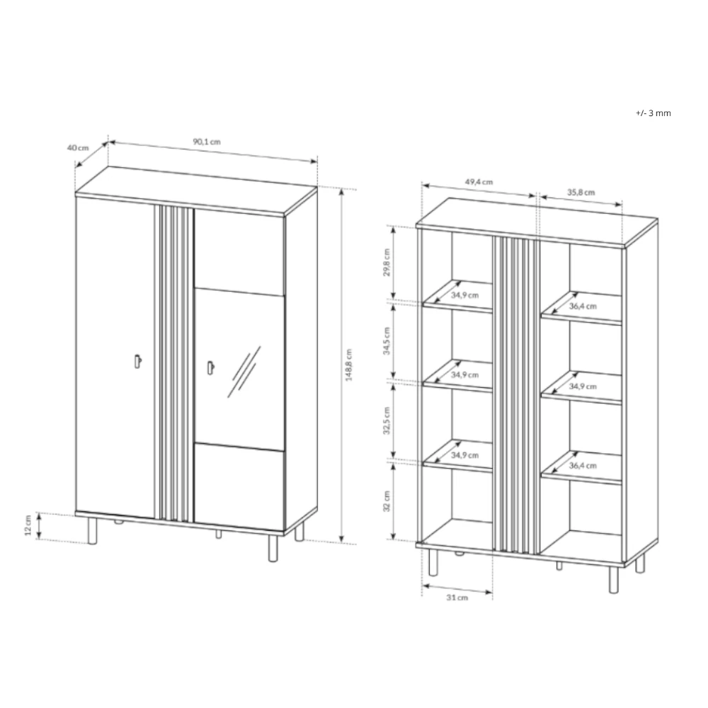 Dzięki kompaktowym wymiarom witryna Axel doskonale sprawdzi się w salonie, jadalni lub domowym gabinecie, nie przytłaczając przestrzeni, a jednocześnie oferując dużo miejsca do przechowywania.