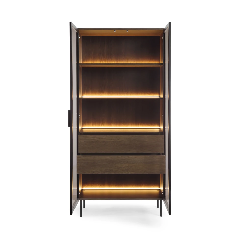 Witryna wysoka z szufladami i oświetleniem LED Nokta Dąb Dunin